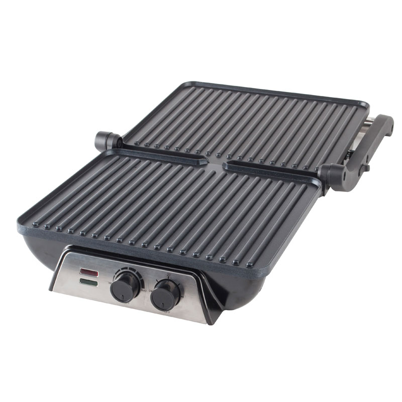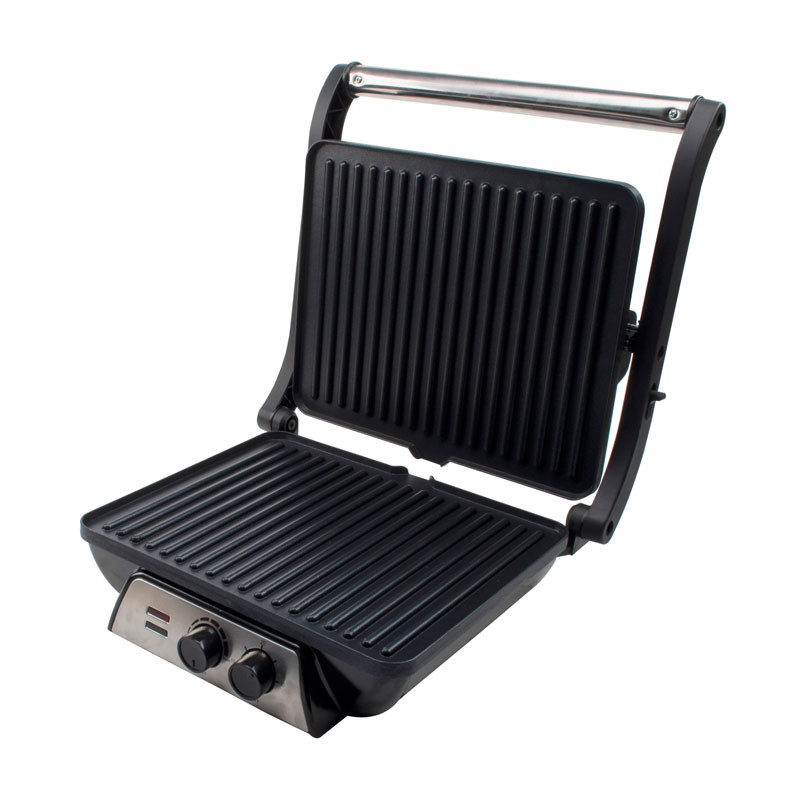 | Các tính năng chính | Tay cầm an toàn khi chạm vào mát, Khay nhỏ giọt để thu gom dầu thừa, Núm điều chỉnh nhiệt độ, Lớp phủ chống dính để dễ dàng vệ sinh, Hệ thống bản lề nổi (tự động điều chỉnh theo mọi kích cỡ của máy nướng bánh mì, thịt hoặc đồ ăn nhẹ), chế độ nướng mở 180°C, Bật nguồn và đèn sẵn sàng, Chân chống trượt |